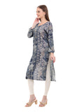 Experience the blend of tradition and contemporary fashion with Varnnan's blue and golden printed kurti – where every thread tells a story of elegance and grace.