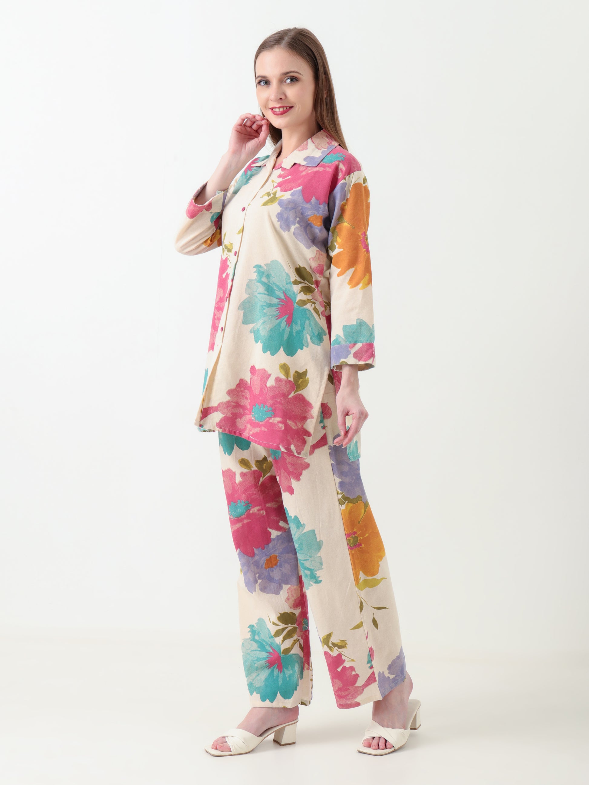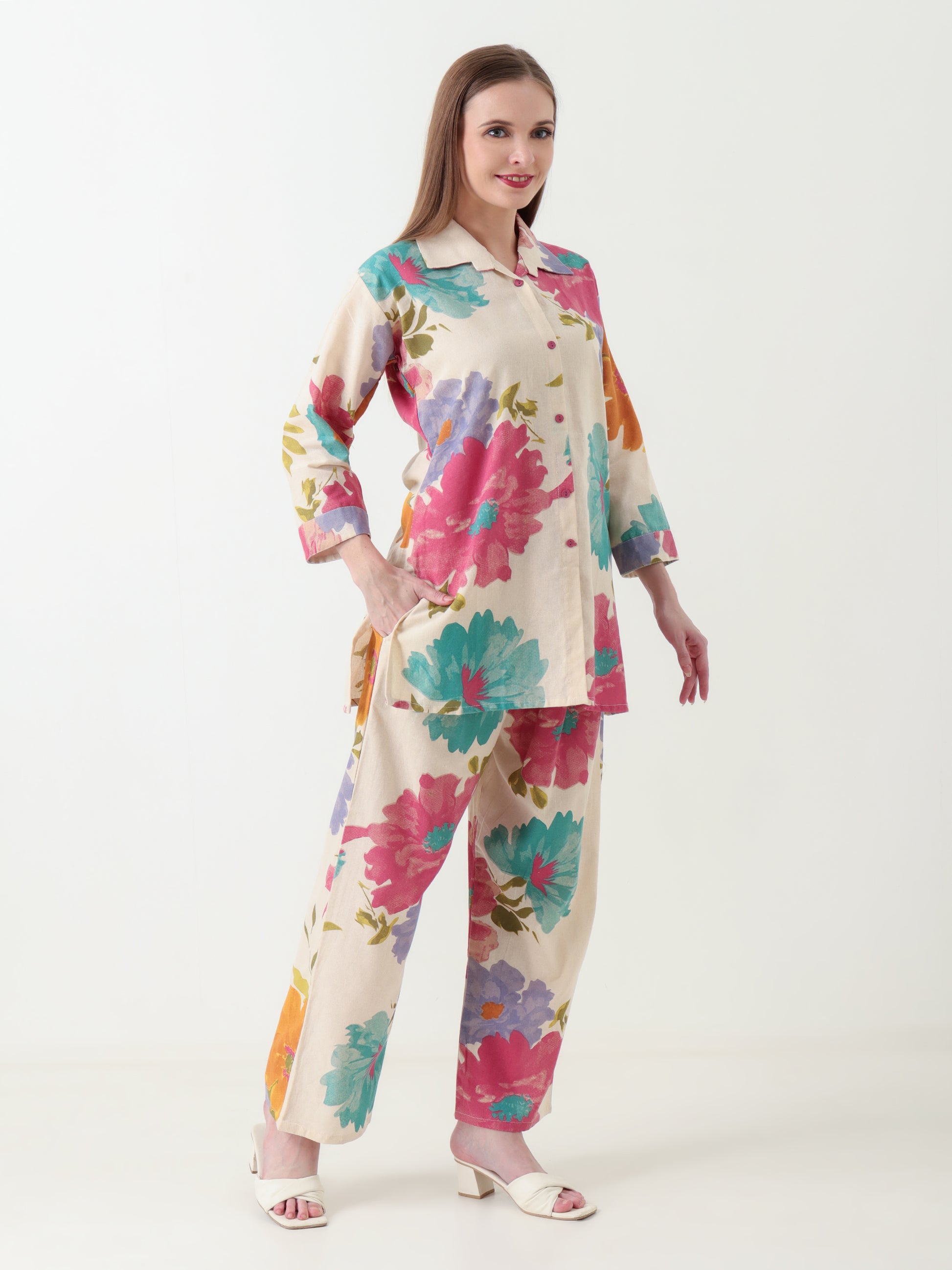 Step into effortless elegance with the Varnnan Floral Flare Co-ord Set — a perfect harmony of comfort, style, and seasonal charm.