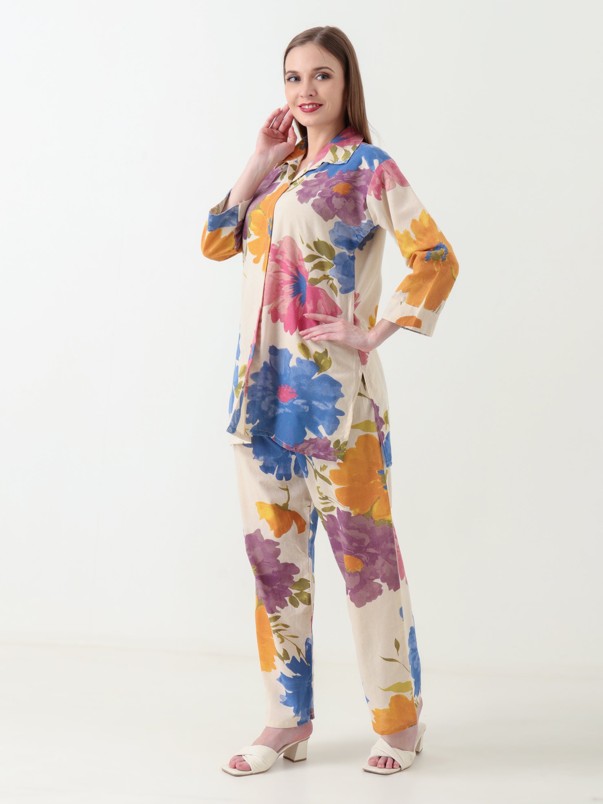 Make a bold style statement this season with the Varnnan Garden Luxe Bright Botanica Co-ord Set — where vivid florals meet effortless sophistication.