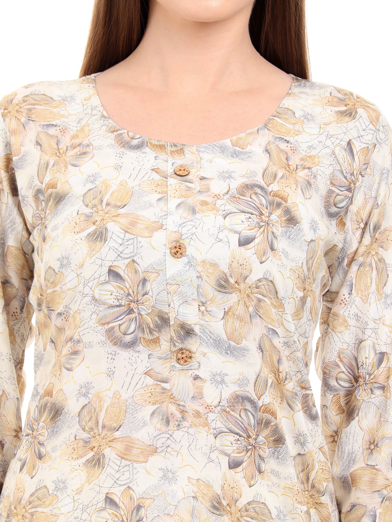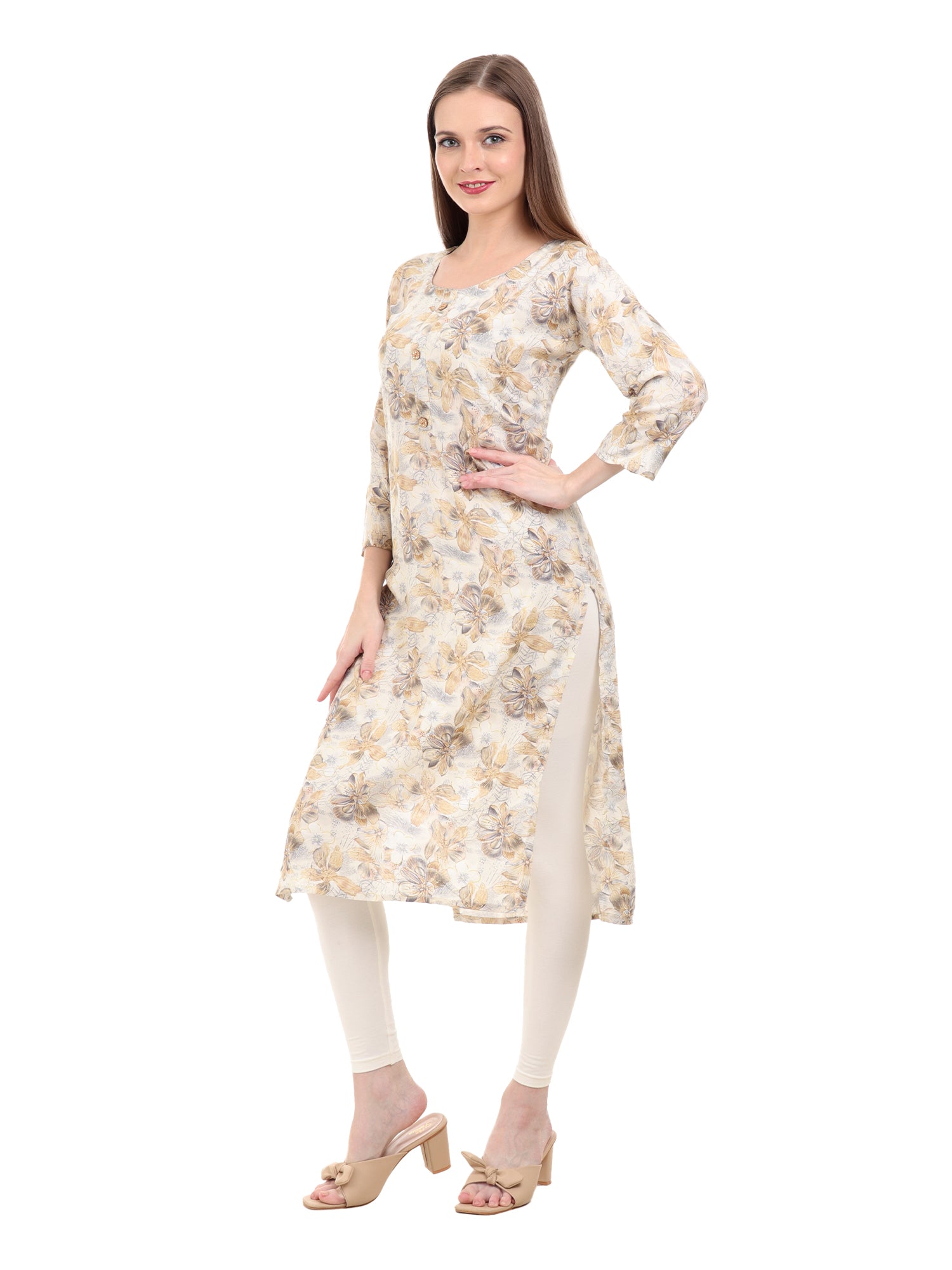 Varnnan Golden Floral Elegance Kurti | Rayon Kurti For Women | Stylish Kurti Online | Varnnan