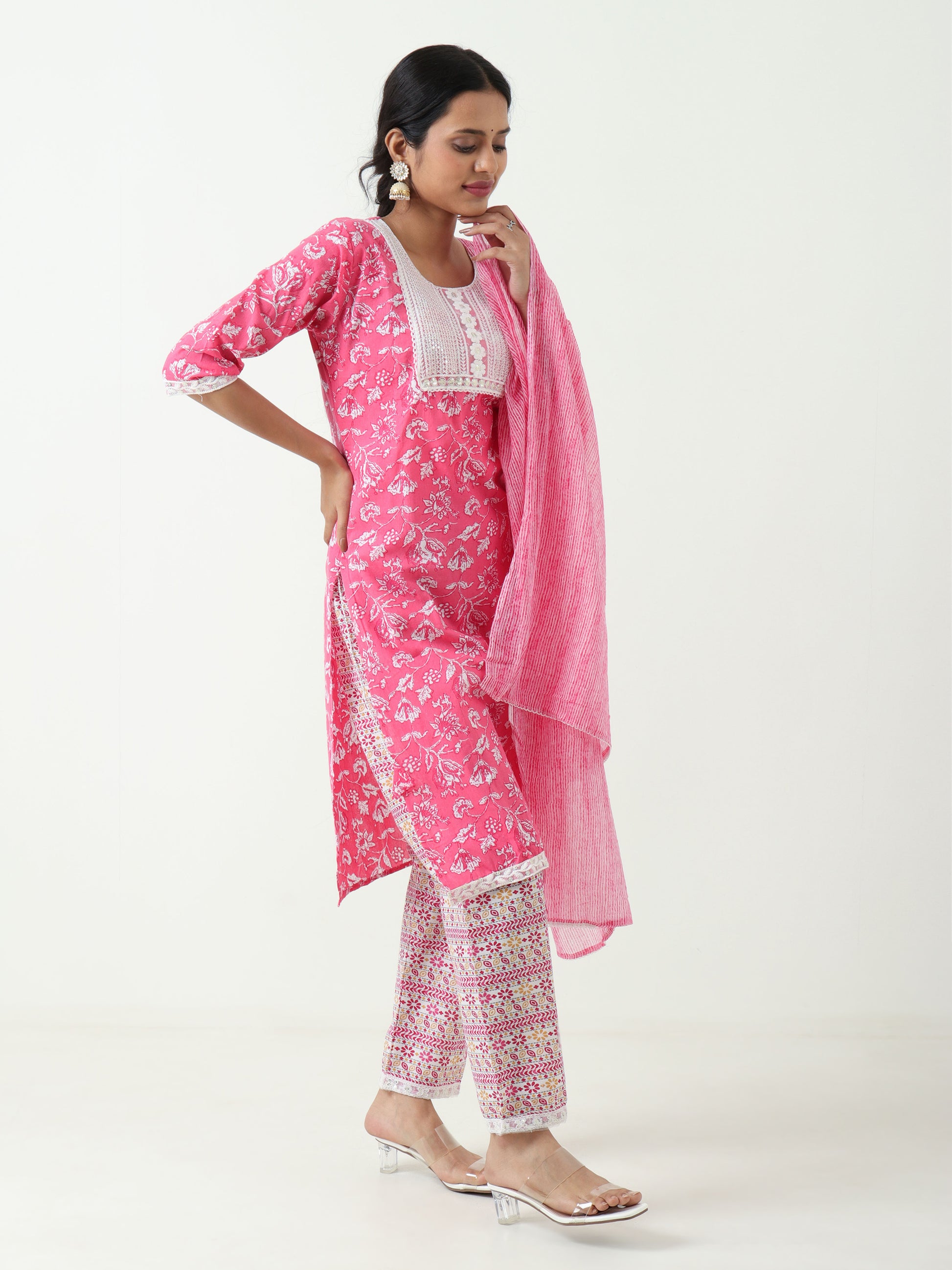 Set Includes: Kurti, Contrasting bottom wear, Matching dupatta